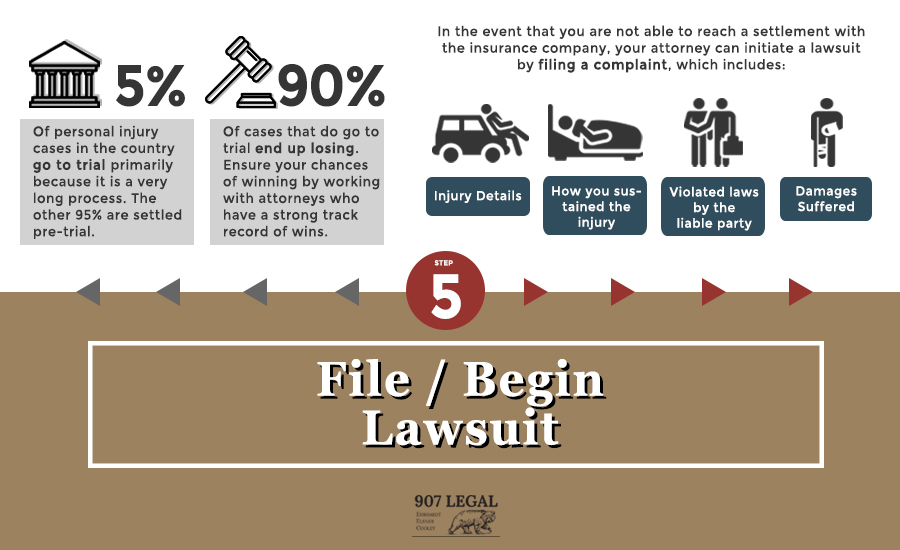 Depending on the nature and extent of your injuries, the settlement process can take up to two years. If you are unable to settle your claim, the next step is to file a complaint with the court. 907 Legal is highly skilled in the settlement negotiation process, is knowledgeable with dates and deadlines, and will always keep the client informed.